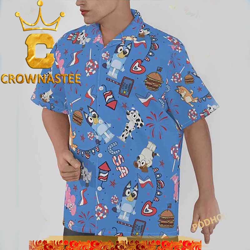 Bluey Chilli 4th Of July Pattern Blue Hawaiian Shirt was crafted and manufactured by Crownastee.