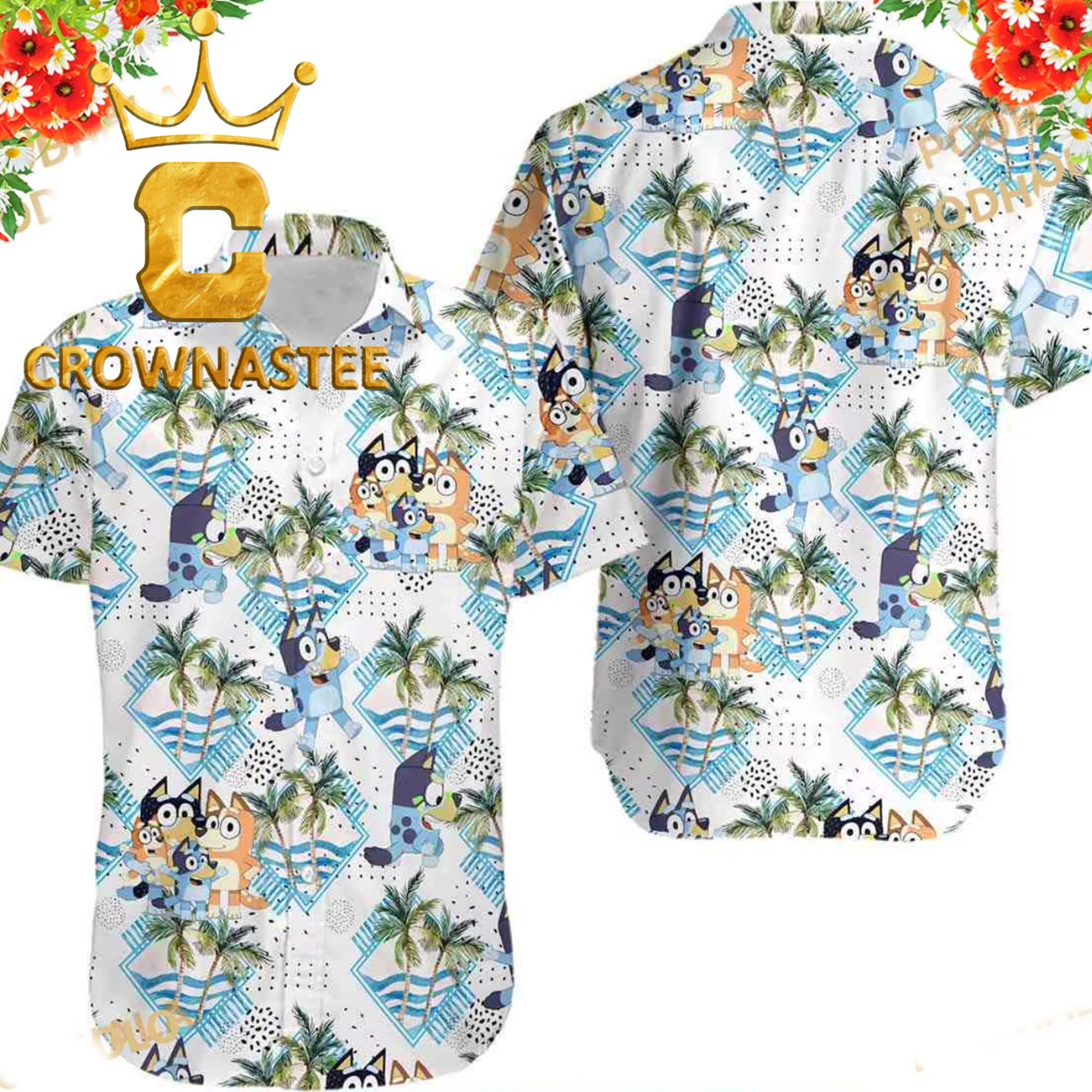 Bluey Chilli Coconut Tree Summer Vibes Hawaiian Shirt