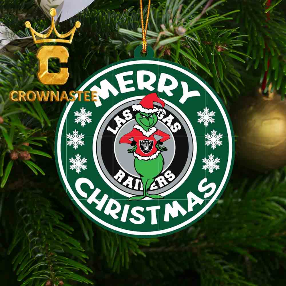 Las Vegas Raiders Grinch Merry Christmas NFL Christmas Tree Decoration Ornament Our custom ornaments blend elegant design with advanced printing technology. They are both visually stunning and long-lasting. We print on both sides using premium UV printing technology. This process captures every detail with vibrant colors and high clarity. The finish resists fading over time. Use them to decorate your Christmas tree, windows, or living room. They also make thoughtful gifts that add charm and sophistication to any space.We craft each ornament from high-quality materials that are lightweight yet durable. You can hang them anywhere without worrying about damage. Each piece includes a pre-drilled hole and a random hanging string. The size is 2.87 x 2.87 inches, perfect for both small spaces and larger displays.