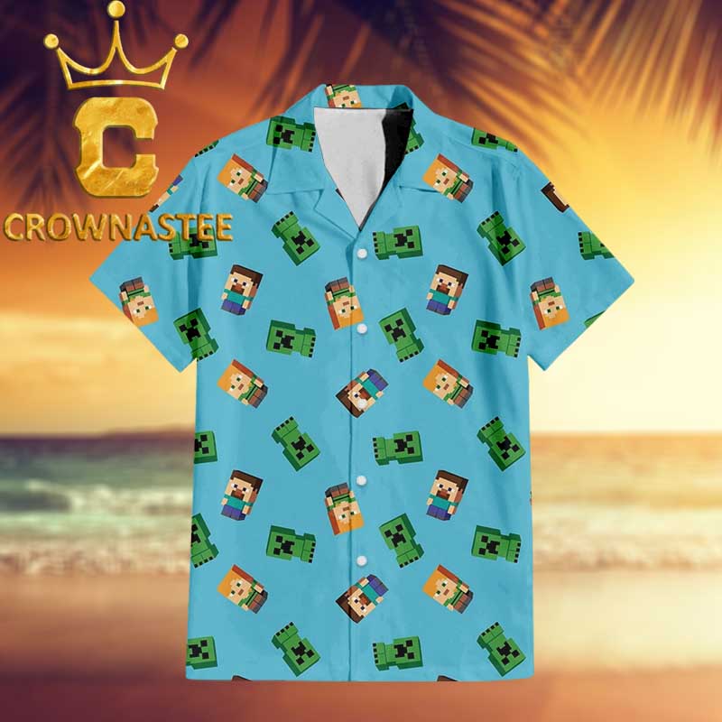 Minecraft Steve Alex Creeper Tubbz Pattern Regular Hawaiian Shirt was crafted and manufactured by Crownastee.