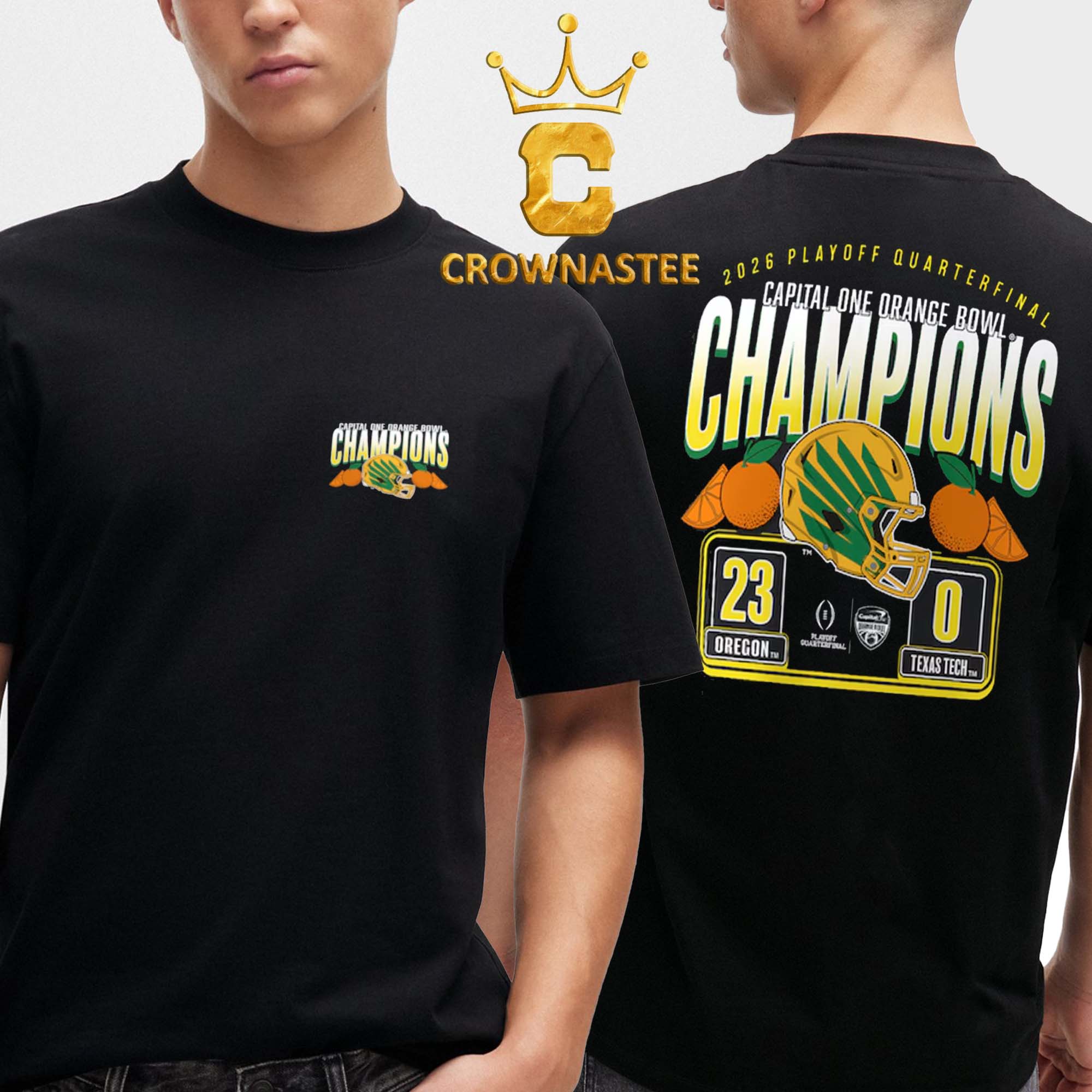 Oregon Ducks Football 2026 Champions Orange Bowl Hometown Two Sided T-Shirt Hoodie Long Sleeve