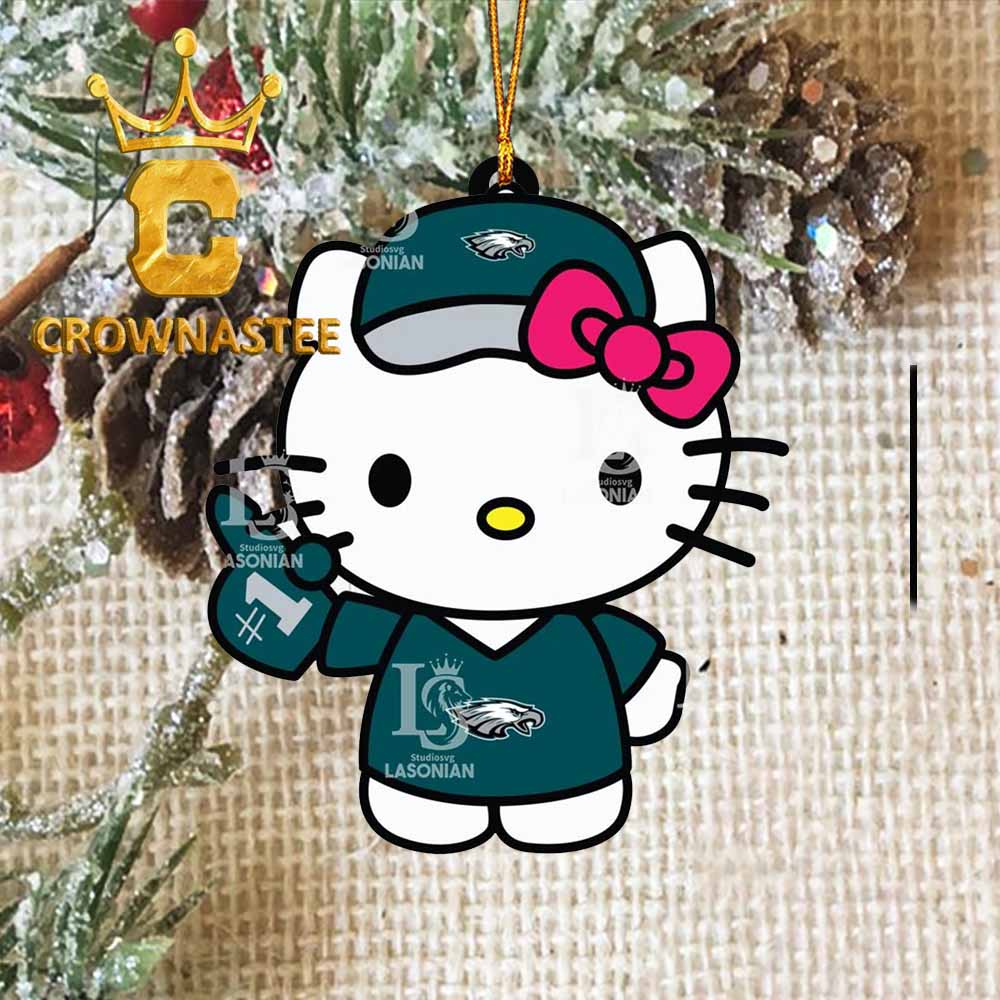 Philadelphia Eagles Hello Kitty Best Fan NFL Acrylic Christmas Tree Decoration Ornament Our custom ornaments blend elegant design with advanced printing technology. They are both visually stunning and long-lasting. We print on both sides using premium UV printing technology. This process captures every detail with vibrant colors and high clarity. The finish resists fading over time. Use them to decorate your Christmas tree, windows, or living room. They also make thoughtful gifts that add charm and sophistication to any space.We craft each ornament from high-quality materials that are lightweight yet durable. You can hang them anywhere without worrying about damage. Each piece includes a pre-drilled hole and a random hanging string. The size is 2.87 x 2.87 inches, perfect for both small spaces and larger displays.