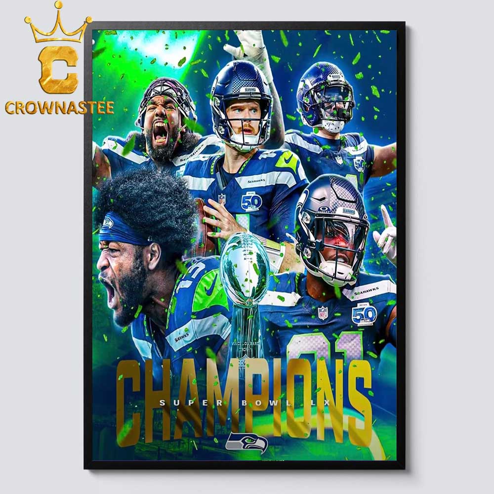 Seattle Seahawks 2025 Super Bowl LX Champions Trophy Home Decor Poster Canvas