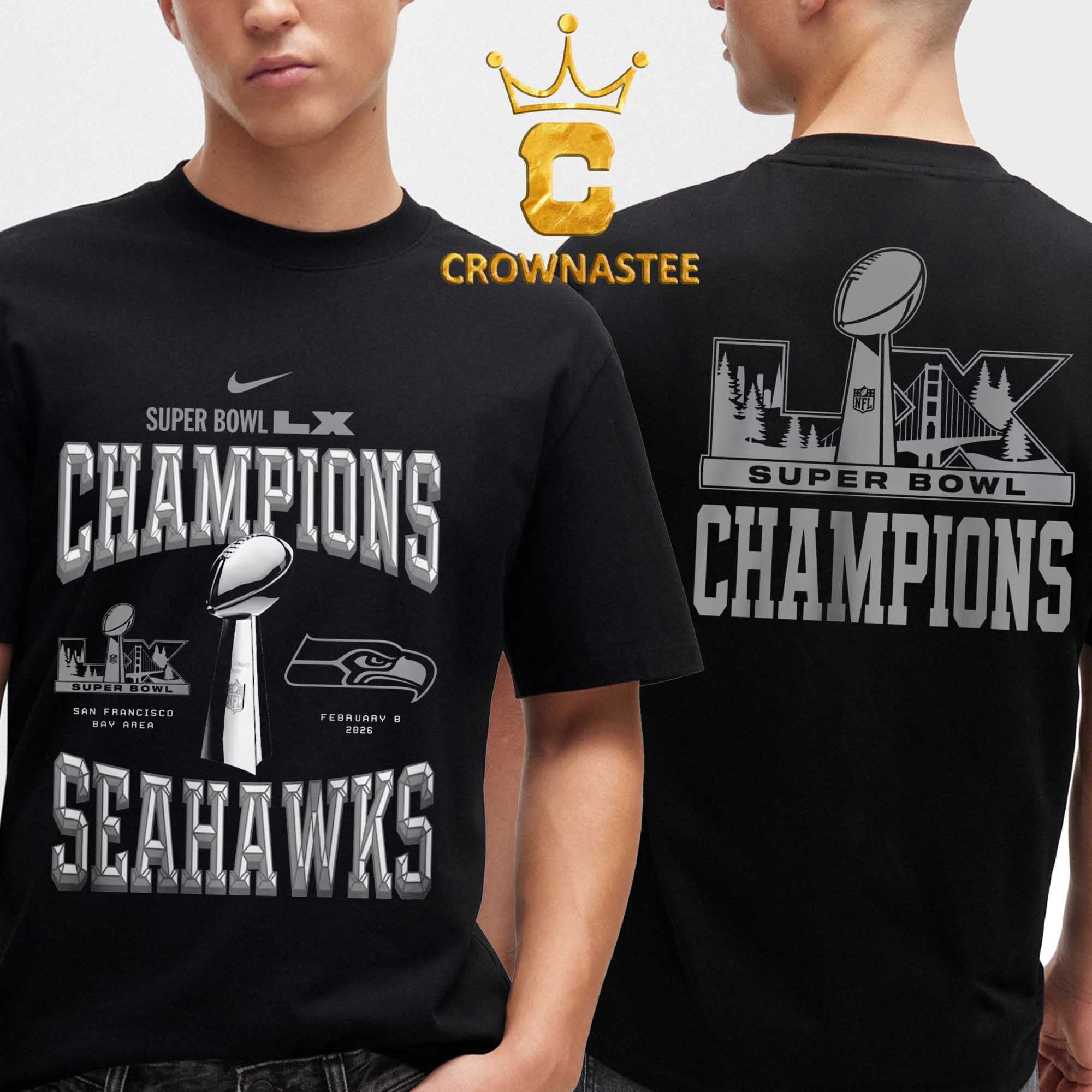 Seattle Seahawks Nike Super Bowl LX 2025 Champions Locker Room Trophy Two Sided T Shirt