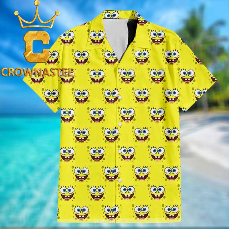 Spongebob Face Pattern Yellow Hawaiian Shirt was crafted and manufactured by Crownastee.